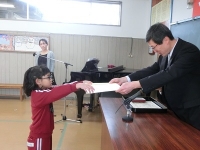 7月20日(水)第一学期の終業式を行いました。分校長先生からの「一学期に楽しかったことはなんですか?」の問いかけに、「社会の勉強」「へリサイクルにのったこと」という声が聞かれ、学習や行事などとても充実した毎日を過ごせたことがわかりました。また、たなばた展と読字力検定試験の表彰や、係の先生より、夏休みを安全に楽しく過ごすための話もありました。