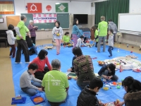 5月15日(木)本校体育館に福島保育所のいちょう組とぽぷら組の友達が来て一緒に運動をしました。ぐるぐると体育館を大きく走った後は、曲に合わせてダンスを踊ったり、大玉転がしをしたりしました。ペアになった友達の名前を呼んだり自分のチームの応援をしたりしながら、楽しく体を動かすことができました。来週も一緒に運動しようね。